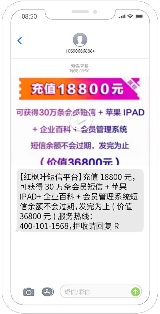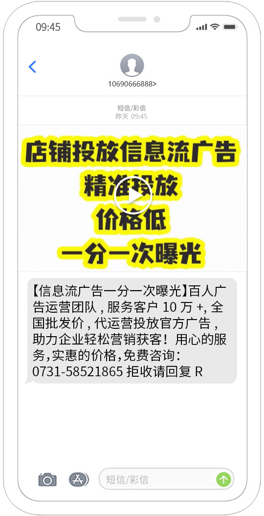 視頻短信發(fā)送能夠覆蓋移動、聯(lián)通、電信用戶,正規(guī)集團視頻短信通道,快速、可靠、穩(wěn)定、形象好,能快速將您的訊息投放到用戶的手機。
